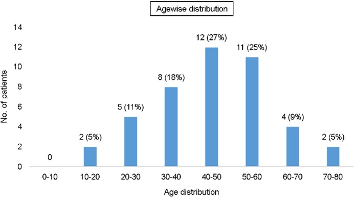 Of the 53 samples collected, 44 were culture-positive. Patients with culture-positive fungal keratitis patients were primarily male (34/44, 77.27%, Table 1). As presented in Fig. 1, patients with fungal keratitis were most commonly aged 40-50 years (28%), followed by 50-60 years (27%).