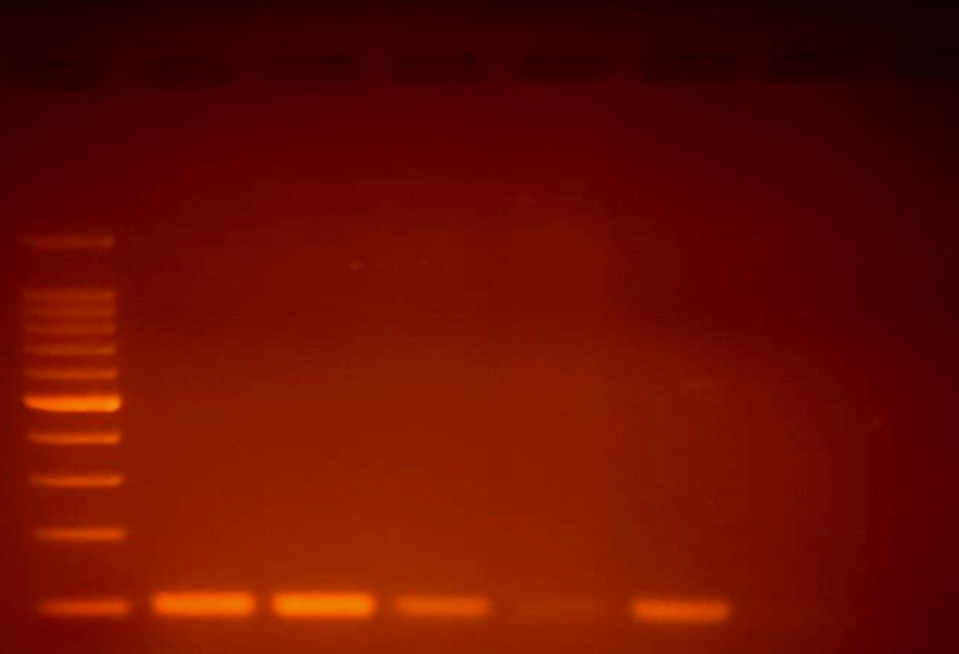 The DNA extraction procedure from the stool sample included cell lysis using lysis buffer and proteinase K to break down proteins and release DNA, which was incubated at 56℃ for 1 hour. Phase separation was performed using phenol-chloroform, followed by centrifugation at 12,000 rpm for 10 minutes. Cold isopropanol or ethanol was added, mixed and centrifuged to produce a pellet of DNA, which was washed with 70% ethanol and centrifuged again. The DNA was mixed with nuclease-free water and incubated at 55℃ for 10 minutes. The conventional PCR method was used. In short, an initial denaturation at 95℃ for 5 minutes was performed, followed by 30 cycles of amplification, denaturing, primer annealing, and primer extension at 94℃ × 30 seconds, 58℃ × 60 seconds, 72℃ × 30 seconds each. The final steps of PCR amplification involved raising the temperature to 72℃ × 7 minutes PCR products were observed using 2% agarose gel electrophoresis. Ethidium bromide (EtBr) staining was used for visualization under a UV trans-illuminator.