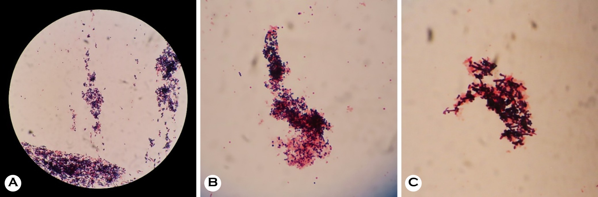 Morphologically, D. congolensis is unique among the other types of actinomycetes because of its complex life cycle, which entails the maturation of filamentous hyphae into packets of motile zoospores through transverse and longitudinal septa- tions2. Histopathologic sections often reveal long, branching filaments with a pathognomonic "tram-track" appearance that invades the stratum corneum6,8. However, the Gram staining of our cultured colonies predominantly revealed fragmented short filaments and clusters of coccoid cells rather than lengthy hyphae. This discrepancy likely results from the organism reaching the zoospore stage and the inevitable fragmentation of delicate hyphae during the mechanical disruption of hard, adherent colonies. Crucially, the coccoid cells in our specimen were not randomly arranged, such as in staphylococci, but formed distinct cuboid packets, indicating the characteristic multidimensional septation of D. congolensis2. This specific arrangement serves as a key differentiating feature from other Gram-positive cocci in culture smears.